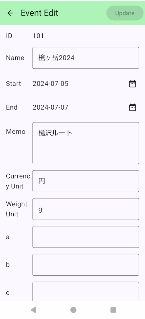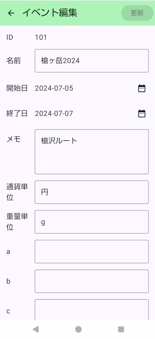 - 更新ボタンはこの画面で修正した内容でデータを更新して、イベントリスト画面に戻ります。
