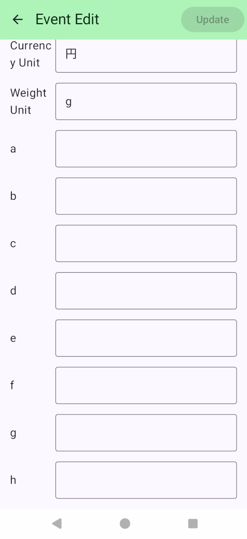 - 重量単位 : リストに表示する時の重さの単位です。ひとつのイベント内で複数の重さの単位を使用することはできません。