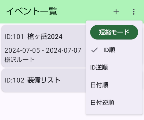 - イベントリスト画面に戻り、イベントごとのメニューアイコンをタップしてください。