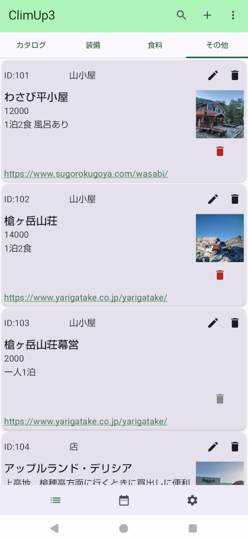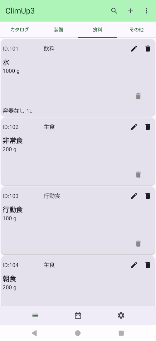 - 各リスト画面共通でカード単位に「編集」アイコンと「削除」アイコンが有ります。