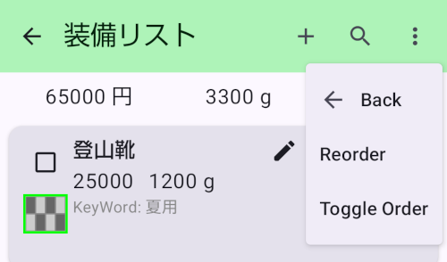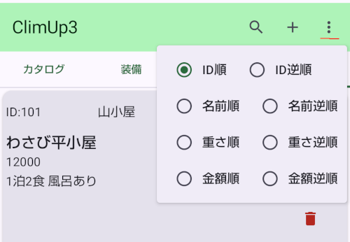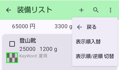 - アイテムリストのメニューから表示の順序を切り替えられます。