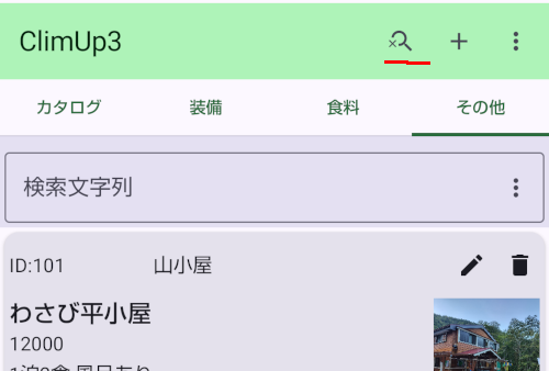 - 虫眼鏡アイコンを押すと検索モードとなります。