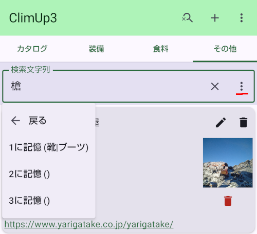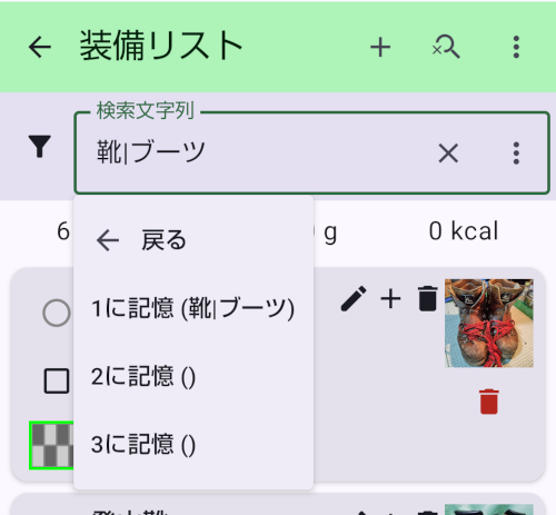 - 検索文字列が入っている時にはメニューボタンから3つまで記憶させることが出来ます。