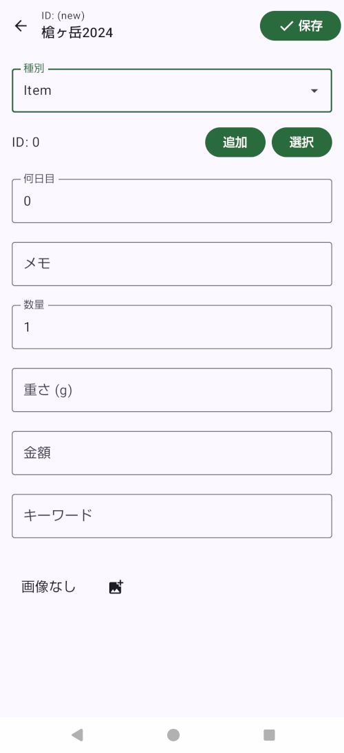 アイテムはテンプレートとして利用され、リレーションに実際に使用される数量や重さ費用を設定します。
