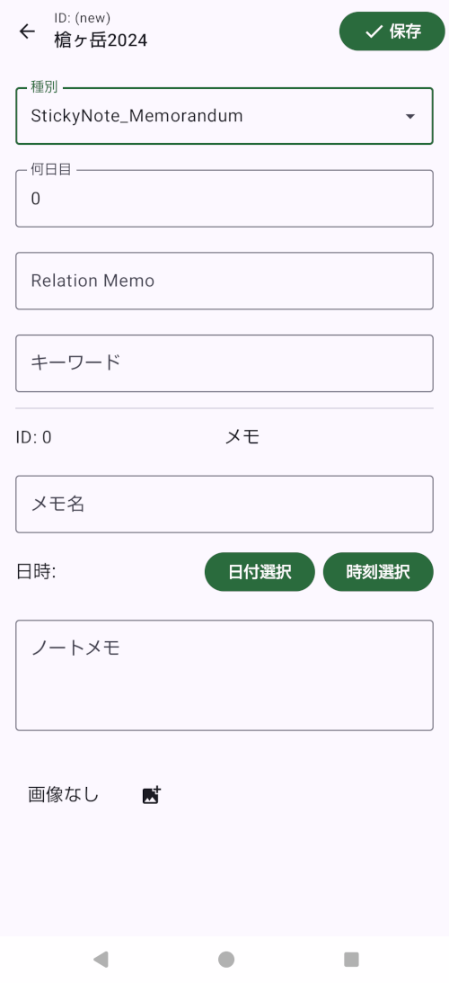 - メモ : リストに表示されるメモです。修正可能です。