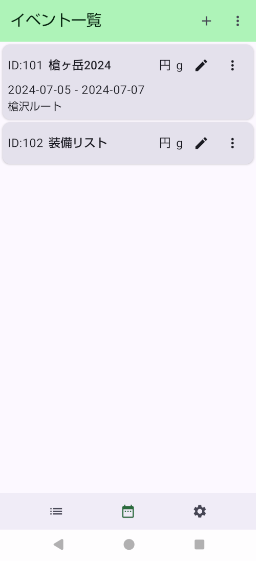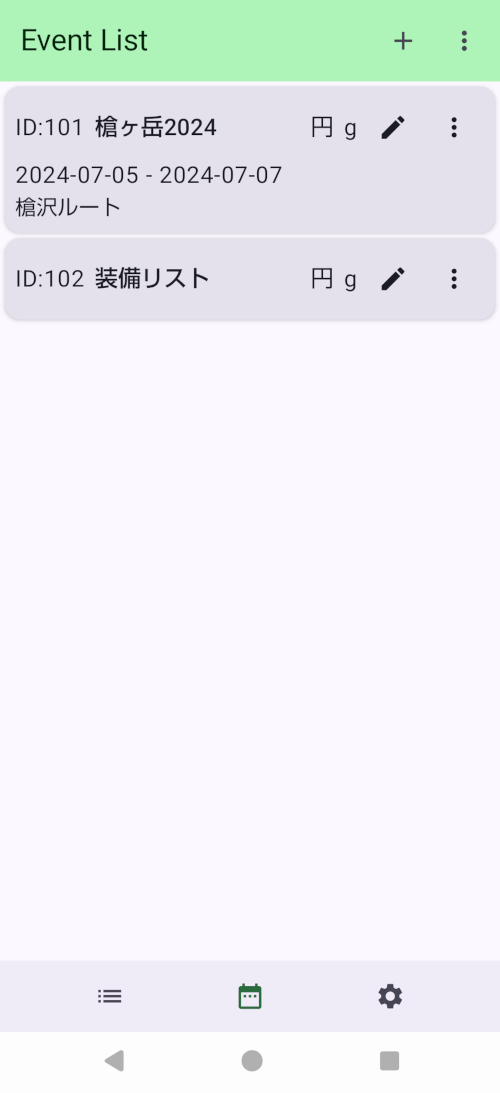 - イベントごとの編集アイコンをタップすると「イベント編集」画面へ移動します。