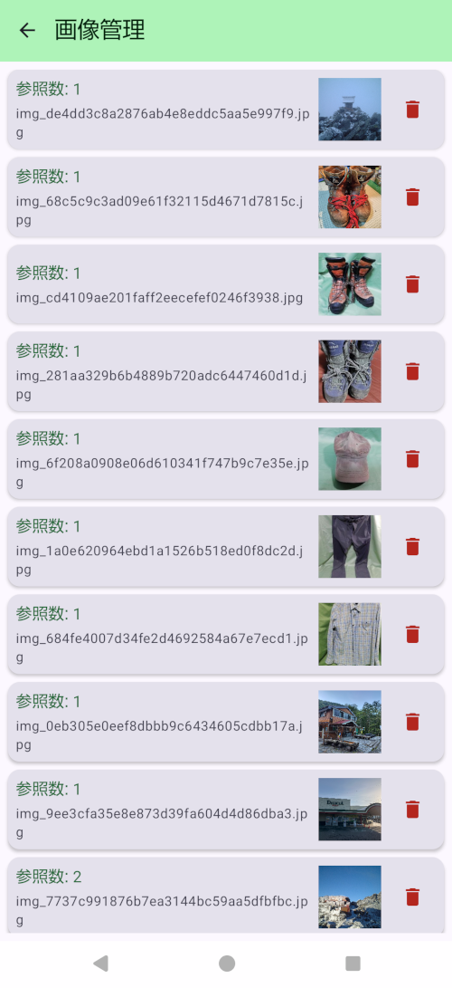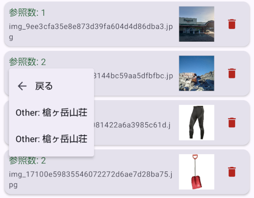 - アイテム類やリレーションを削除してもつかわれている画像は削除されません。参照数が0の画像はどこでも使われていませんので削除することが出来ます。